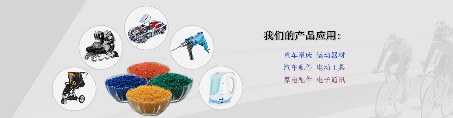 應(yīng)用范圍:運(yùn)動器材、家電配件、電子連接器、汽車配件、電動工具、醫(yī)療器材、童車童床、照相器材等。